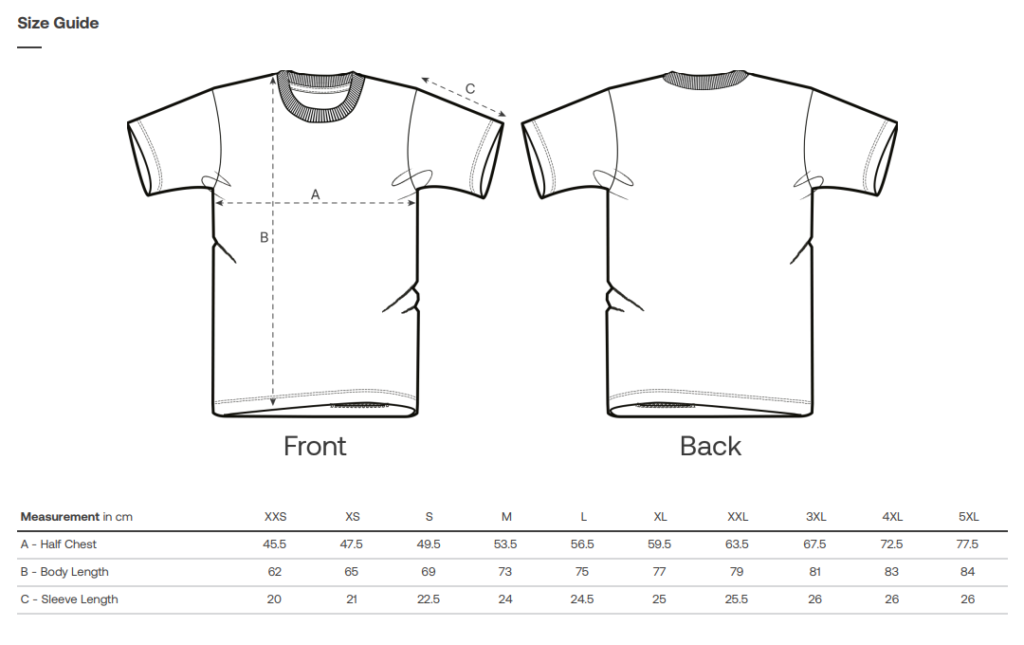 Measurements may vary by up to ±2 cm from the size chart.